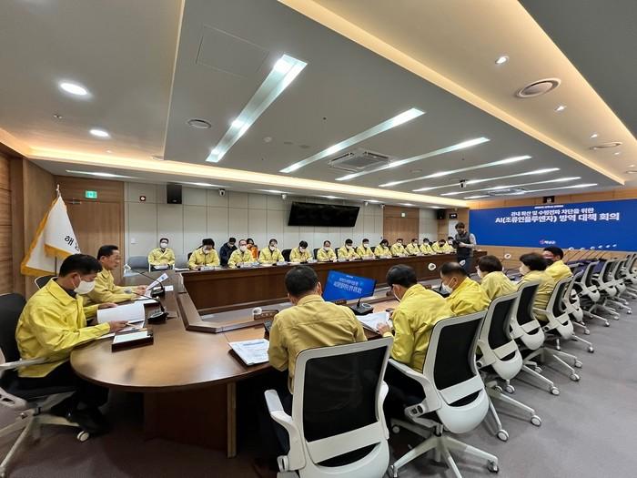 | ▲ 명현관 해남군수가 지난 13일 해남군청 상황실에서 조류인플루엔자 확산방지 방역 회의를 주재하고 있다. / 사진=해남군 제공 |