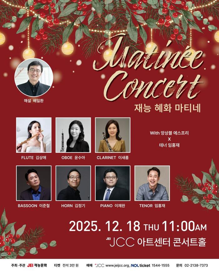 [시민일보 = 여영준 기자] 재능문화가 앙상블 에스프리, 테너 임홍재의 재능 혜화 마티네 공연을 JCC 아트센터 콘서트홀에서 오는 18일에 개최한다고 5일 밝혔다.