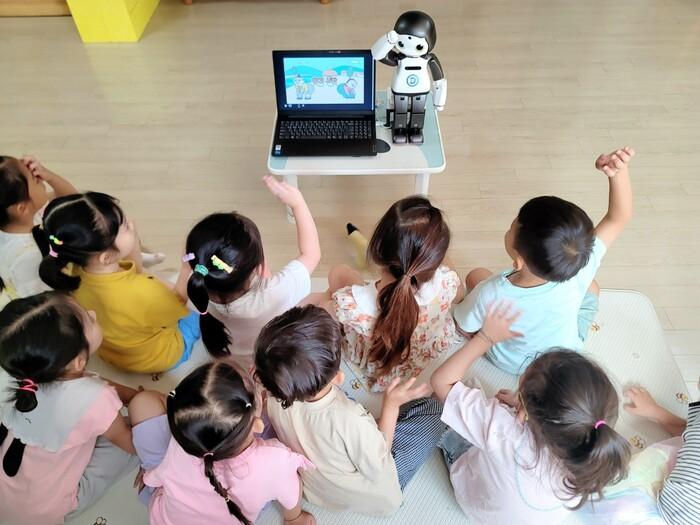 | ▲ 어린이집에서 소셜로봇과 아이들이 교감하는 모습 (사진=중구청 제공) |
