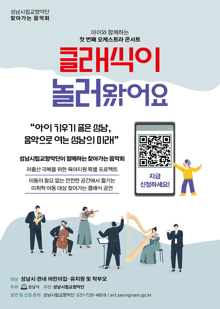성남시립교향악단 관계자는 “어릴 때의 문화 경험은 아이의 감성과 창의성을 키우는 중요한 밑거름이 된다”면서 “이번 음악회가 부모와 아이 모두에게 ‘아이 키우기 좋은 도시 성남’의 환경을 체감하는 계기가 되길 바란다”고 말했다.