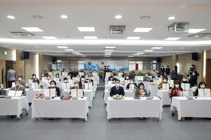 서울 강동구는 자원봉사자의 날을 기념해 7일 자원봉사자들을 응원하기 위해 ‘제24회 강동구 자원봉사 으뜸축제’를 개최했다. 구는 자원봉사자에게 표창장 및 자원봉사 인증서 등을 수여했다. 사진은 이날 행사에서 이정훈 구청장(오른쪽 네 번째)이 자원봉사자들과 함께 기념촬영을 하는 모습. (사진제공=강동구청)