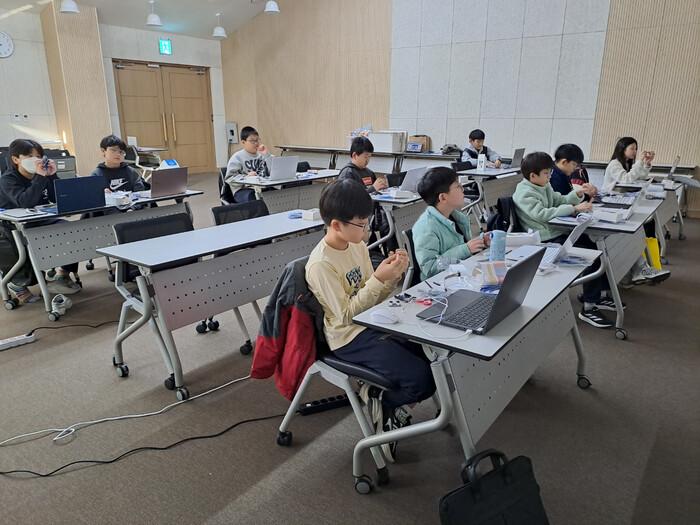 | ▲ 용인시산업진흥원은 서농도서관에서 교육생을 대상으로 아두이노를 활용한 초음파 피아노 만들기 체험 프로그램을 운영했다.(사진=용인시산업진흥원 제공). |