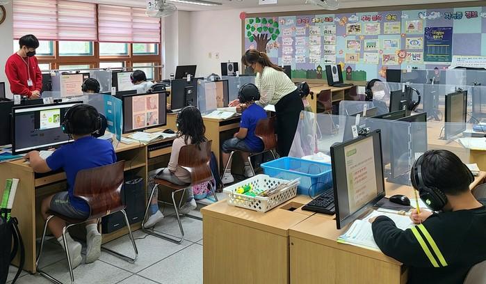 | ▲ 디지털 튜터가 구내 학교에 파견돼 아이들을 가르치고 있는 모습. (사진제공 = 서대문구청) |