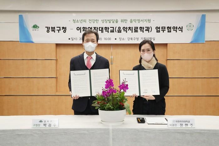 [시민일보 = 홍덕표 기자] 서울 강북구(구청장 박겸수)가 11일 이화여자대학교 음악치료학과와 청소년의 건강한 성장 발달을 위한 음악정서지원 업무협약을 체결했다.