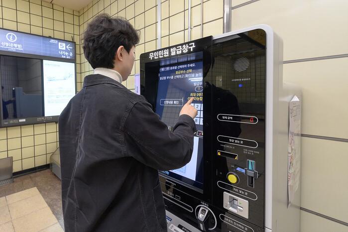 | ▲ 양천구 신정역에 새로 설치된 무인민원발급기에서 제증명서를 발급 중인 구민. (사진=양천구청 제공) |