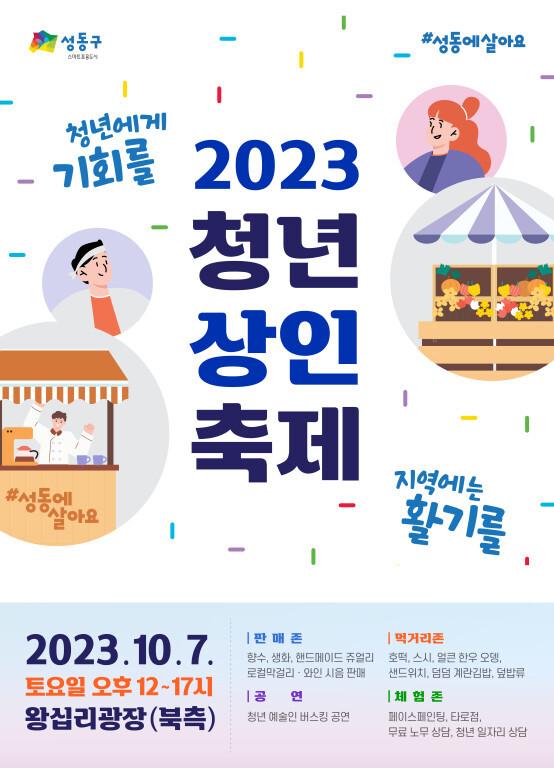 [시민일보 = 홍덕표 기자] 서울 성동구(구청장 정원오)는 오는 7일 낮 12시부터 오후 5시까지 왕십리광장에서 '2023년 청년상인축제'를 처음 개최한다.