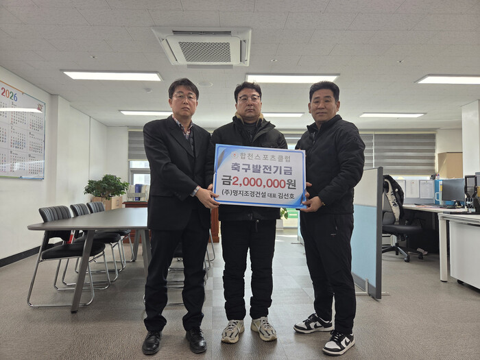 김선호 명지조경건설 대표는 “지역 아이들이 마음껏 운동할 수 있는 환경을 만드는 것이 기업의 사회적 책임이라고 생각한다”며 “이번 기탁이 합천 유소년 축구가 더욱 성장하는 데 작은 보탬이 되길 바란다”고 기탁 취지를 밝혔다.