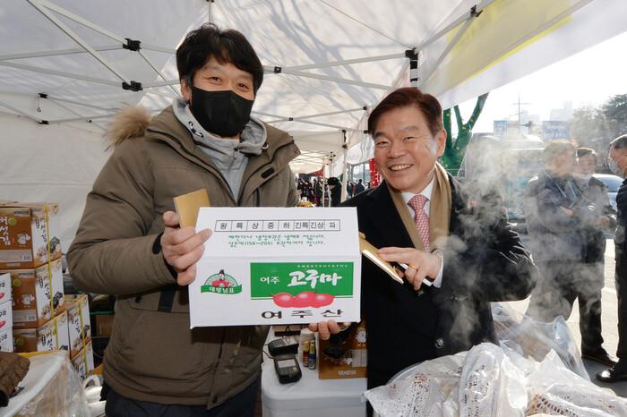 | ▲ 2023년 설맞이 직거래 장터를 찾은 이필형 동대문구청장 (사진=동대문구청 제공) |
