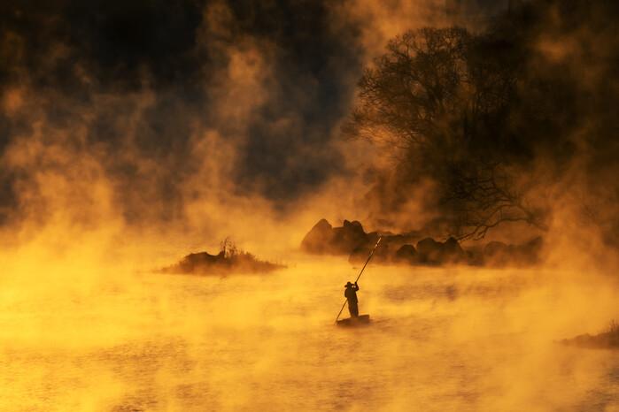 서 작가의 이번 출품작 ‘황금빛 안개와 어부’는 전문사진분야 자연풍경 부문으로 합천호 수면 위로 물안개가 피어날 때 황금빛 일출이 스며드는 순간에 나룻배를 띄워 극적인 효과를 연출한 작품이다.
