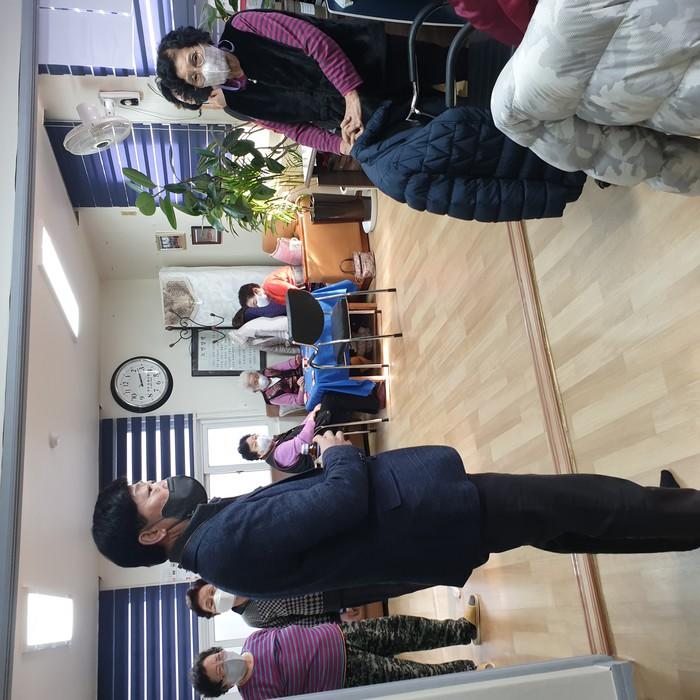경기 동두천시 생연2동행정복지센터가 최근 설 명절을 맞아 지역내 경로당 10곳을 방문해 각 10kg 총 100kg의 쌀을 전달하고 경로당 이용에 대한 애로사항을 청취했다. 사진은 경로당을 방문한 김일 생연2동장이 노인들과 대화를 나누고 있는 모습. (사진제공=동두천시청)