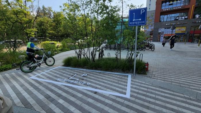 | ▲ 강동구 고덕역 4번 출구에 설치된 개인형 이동장치 주차구역. (사진제공=강동구청) |