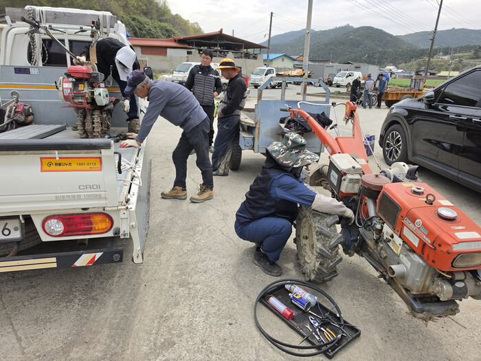 마을에 직접 찾아오는 ‘농기계 순회안전교육’은 거동이 불편한 고령자와 농기계 이동이 어려운 농가에 실질적인 도움이 되었으며, 이날 경운기, 예초기, 이앙기 등 현장 수리가 가능한 농기계에 대해서는 무상으로 수리 및 부품교체를 실시해 농가 부담을 덜어주었다.
