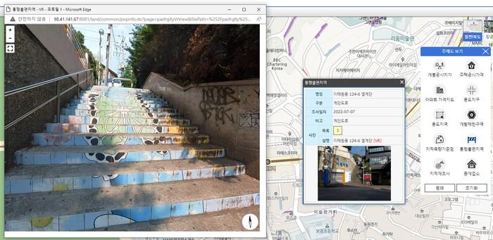 전체 500여곳 중 차량통행불가 44곳, 계단도로 71곳, 막다른 도로 57곳 등 172곳에 대해 360°VR을 촬영, 데이터베이스(DB)를 구축했으며, 나머지 공간도 지속적으로 촬영해 업데이트 할 예정이다.