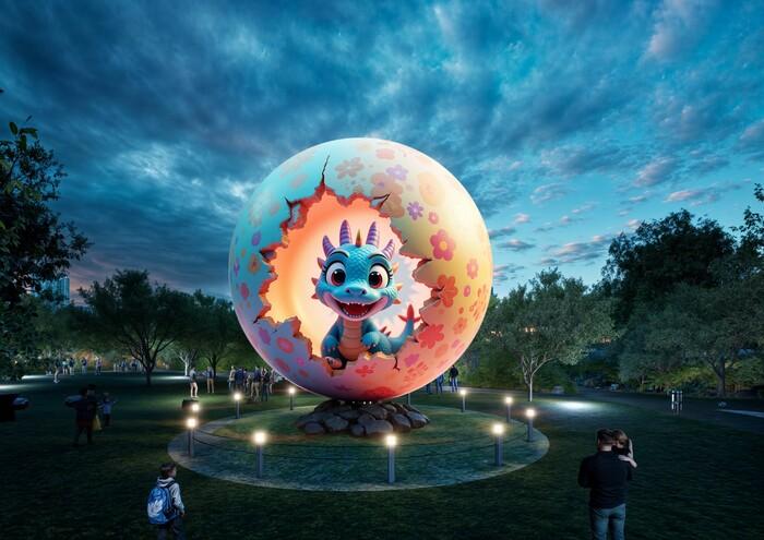 ‘더 스피어’는 특수 곡면형 LED 디스플레이의 7m의 구형으로 제작돼, 서호 관리사무소 자리에 들어선다