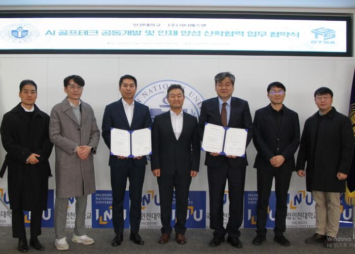 | 인천대학교와 지티에스앤간 업무협약 체결행사 참가자들이 포즈를 취하고 있다. [사진=인천대] |