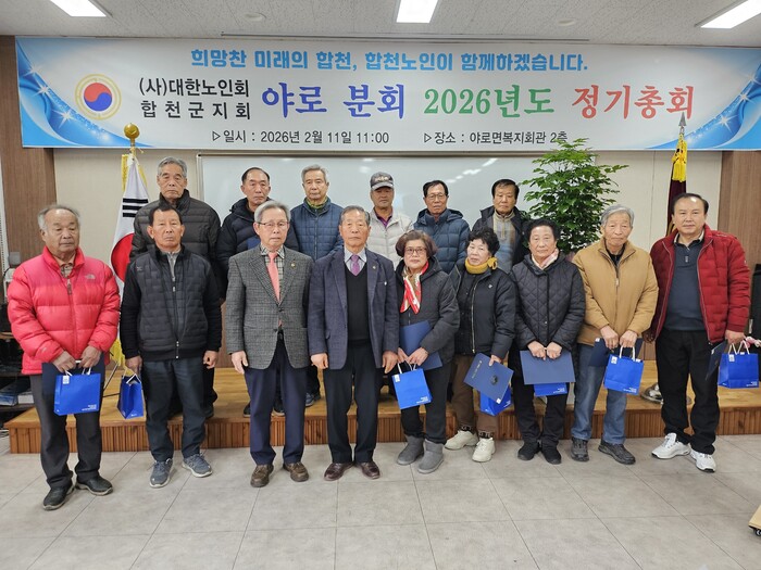 이날 총회에서는 야로면 마을경로당 회장 등 40여 명이 참석한 가운데 2025년도 결산보고를 비롯해 마을경로당 운영 전반에 대한 토의가 진행되었으며, 13명의 마을경로당 회장이 새롭게 취임해 지역 어르신 복지 증진과 경로당 활성화를 위해 힘쓸 것을 다짐했다.
