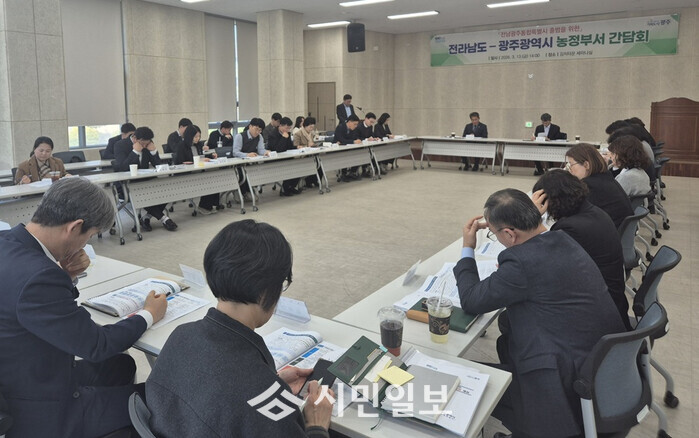 오영걸 광주시 경제창업국장, 유덕규 전남도 농축산식품국장이 공동주재한 이날 회의에는 양 지자체 농정분야 실무진들이 참석해 정책 협력의 기틀을 다졌다.