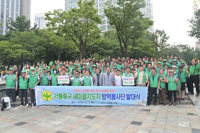[시민일보 = 여영준 기자] 서울 중구(구청장 김길성)가 지난 1일 훈련원공원에서 ‘새마을지도자협의회 방역단 발대식’을 개최했다.