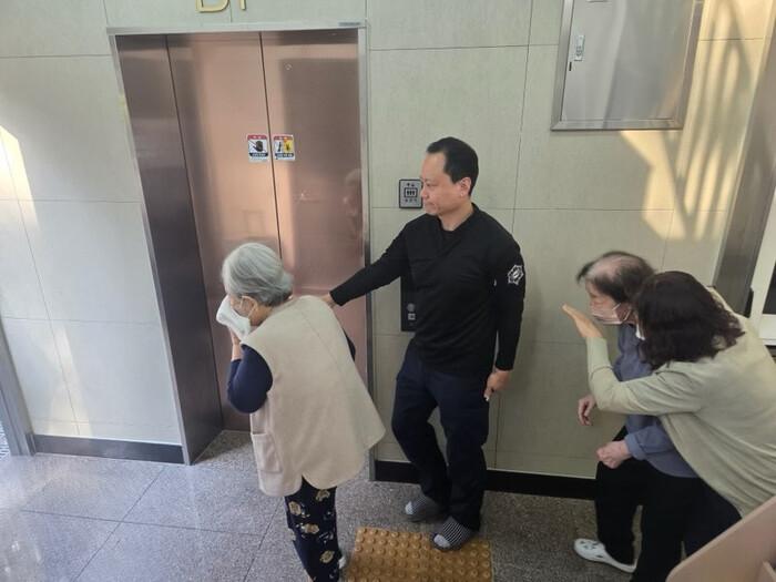 | ▲ 노인시설 대피훈련. (사진=마포소방서 제공) |