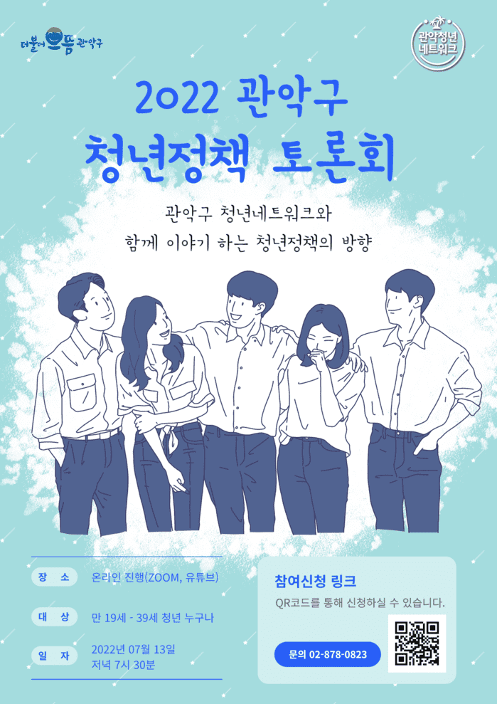 이번 토론회와 관련된 기타 궁금한 사항은 청년정책과 또는 관악 청년네트워크로 문의하면 된다.