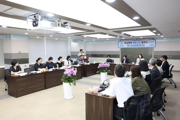 이날 협약과 함께 민·관·학의 상호 협력과 지원방안에 대해서도 상담교사 등 실무관계자들이 참여한 가운데 논의했다. 학교폭력을 예방하기 위해서는 가정, 학교, 구청 등 지역사회 모두가 참여하고 협력하는 전 사회적인 대응이 필요하다는 데 의견을 모았다.