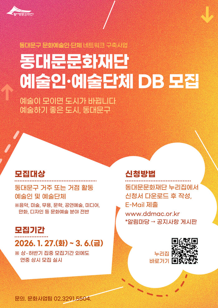 이번 사업은 지역 문화예술 활동이 확대되는 흐름에 맞춰, 동대문구에서 활동하는 예술인·단체 정보를 체계적으로 정리하고 지속 가능한 협력 기반을 마련하기 위해 추진됐다.