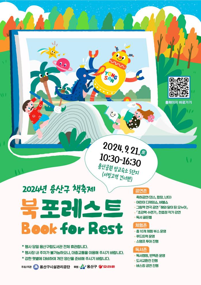 자세한 내용은 '2024년 용산구 책축제' 홈페이지에서 확인하거나 용산꿈나무도서관에 전화 문의하면 된다.