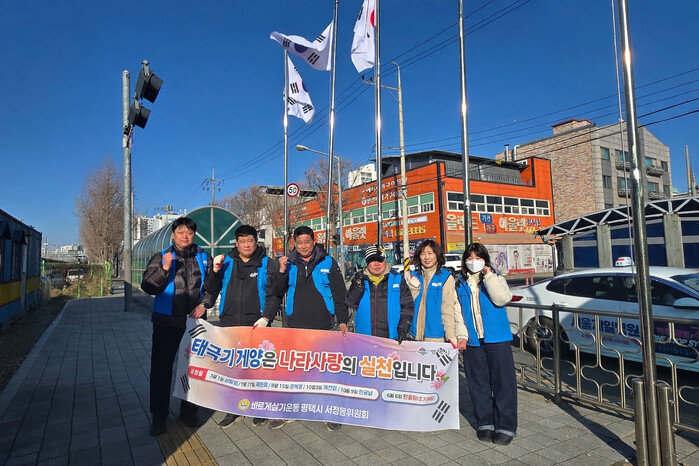 [평택=오왕석 기자] 평택시 바르게살기운동 서정동위원회(위원장 차효열)는 지난 21일 관내 태극기 정비 교체 작업을 진행했다.
