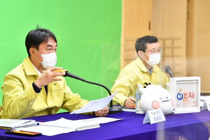 김상호 경기 하남시장은 6일 줌(ZOOM)을 통해 춘궁동·초이동 '주민과의 대화'를 이어갔다. 춘궁동 주민과의 대화에서는 교산 신도시 개발에 따른 이주민 지원대책 등이 질의·건의됐으며, 초이동 주민과의 대화에서는 광암 기업이전대책부지 추진 관련 정주대책 등 주거민원이 제기됐다. 사진은 이날 김 시장(왼쪽)이 주민과의 대화를 하고 있는 모습. (사진제공=하남시청)