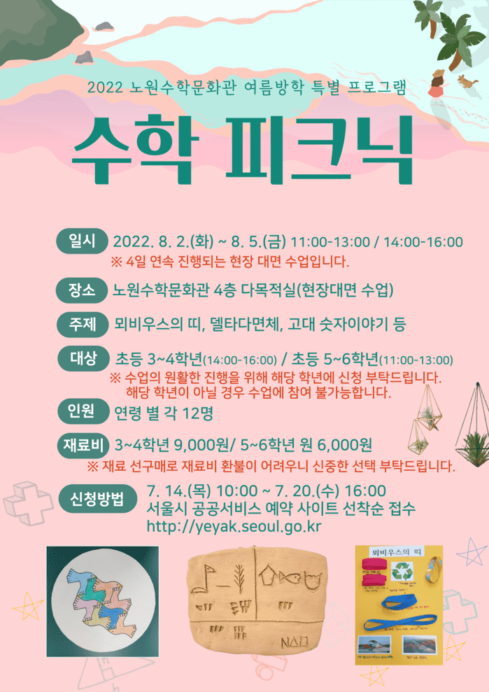 | ▲ 2022 노원수학문화관 여름방학 특별 프로그램 '수학 피크닉' 안내문. (사진제공=노원구청) |