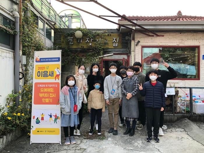 | ▲ 청소년 문화축제 도예체험 프로그램에 참여한 학생들이 기념촬영을 하는 모습. (사진제공=강북구청) |