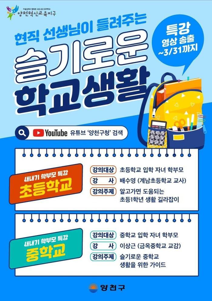 | ▲ 양천구 ‘슬기로운 학교생활’ 영상 특강 홍보포스터. (사진제공=양천구청) |