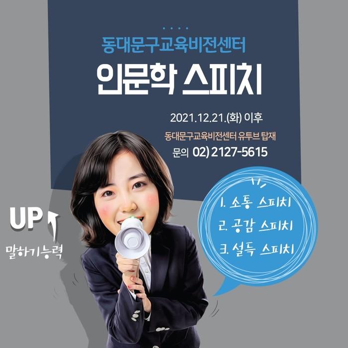 [시민일보 = 이대우 기자] 서울 동대문구(구청장 유덕열)가 21일부터 지역내 학생과 학부모의 효과적인 의사소통 능력 함양을 위한 온라인스마트교육 콘텐츠인 ‘인문학 스피치’를 제공한다.