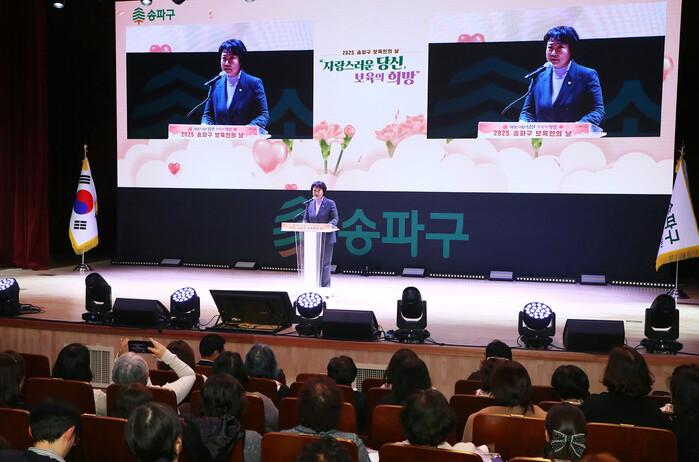 이번 기념식은 송파구 보육인을 위한 화합의 장으로 마련되었으며, 약 500여 명이 참석한 가운데 식전 색소폰 공연, 보육인의 날 기념 영상 상영, 유공자 표창 수여, 기념사 및 축사, 힐링 공연 순서로 진행되었다.