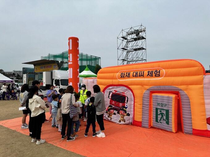 | ▲ 2023년 '안전체험 한마당'에서 참가자들이 화재 대피 체험을 하고 있다. (사진=구로구청 제공) |