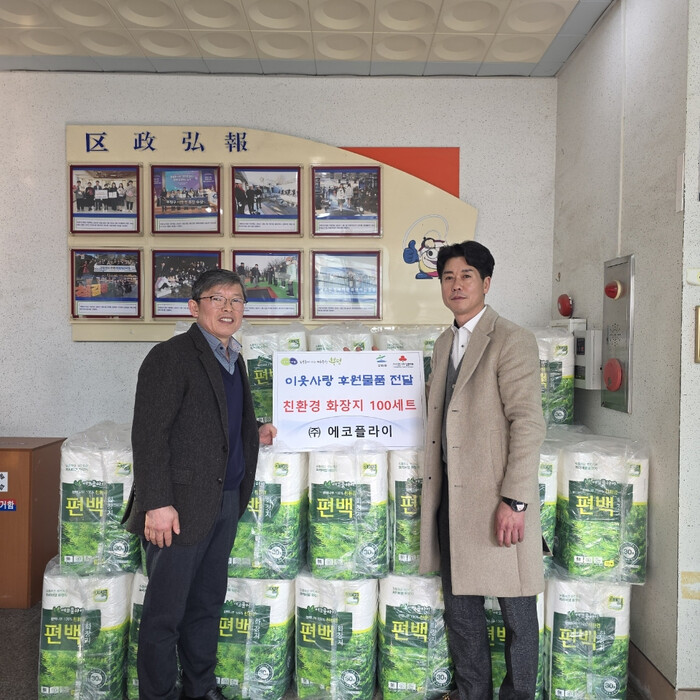 [인천=문찬식 기자] 인천 부평구 십정2동은 지난 12일 ㈜에코플라이 동암점으로부터 편백 화장지 100세트를 기탁받았다고 밝혔다.