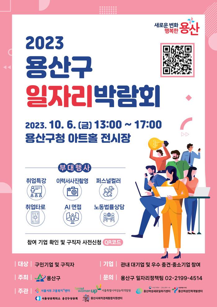 [시민일보 = 홍덕표 기자] 용산구(구청장 박희영)는 오는 10월6일 용산아트홀 전시장에서 '2023년 용산구 일자리박람회'를 개최한다.