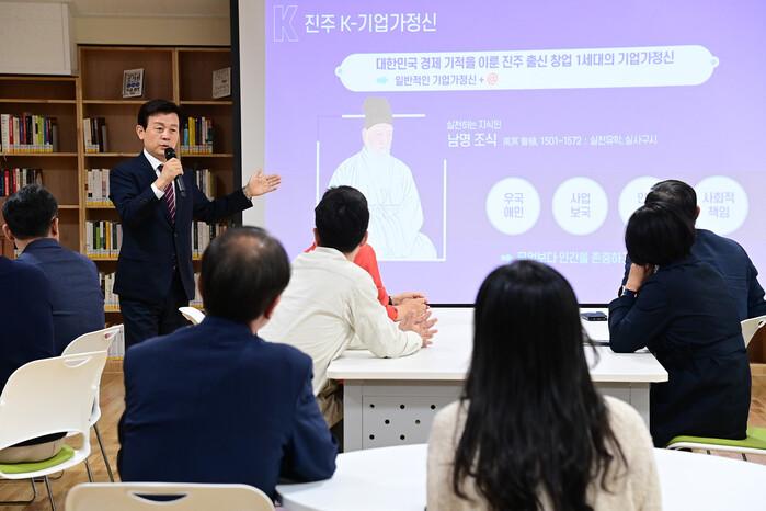 진주시는 진주 K-기업가정신을 세계로 확산하기 위해 이를 배울 수 있는 진주 K-기업가정신센터를 지난해 3월 개소해 운영하고 있다. 지난해 이곳에서 중소·벤처기업 CEO 등 2000여 명을 대상으로 진주 K-기업가정신을 교육했다.