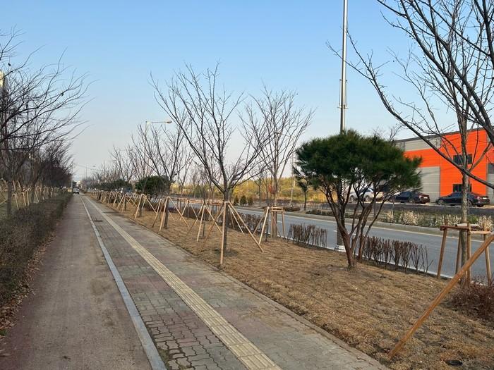 올해 진행된 2단계 사업은 1단계 사업지와 맞닿은 선형 녹지대(완충녹지, 가로수)에 숲을 확대 조성한 것이다.