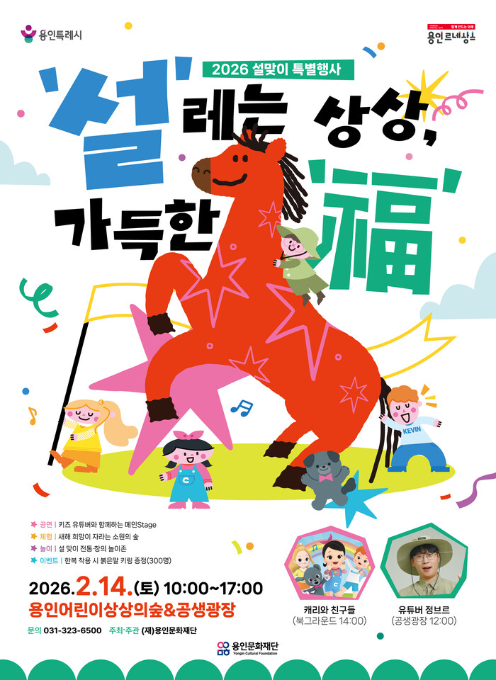 [용인=오왕석 기자] 용인문화재단(이사장 이상일)은 2026년 설 명절을 맞아 2월 14일(토), 용인어린이상상의숲과 용인문화도시플랫폼 공생광장 일원에서 설맞이 특별행사 〈‘설’레는 상상, 가득한 ‘福’〉을 개최한다.