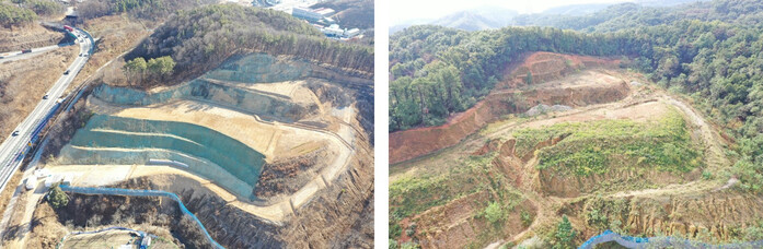 | ▲ 용인특례시가 원상복구 명령을 내린 산지의 전(왼쪽)과 후(오른쪽) 모습. |