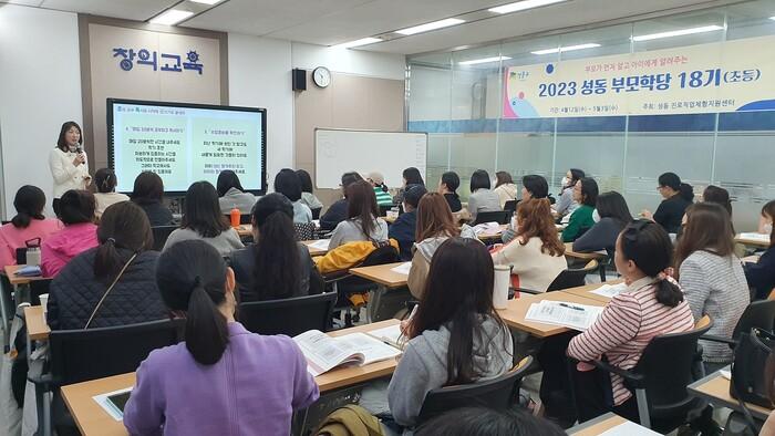 | ▲ 성동구가 9월 20일부터 10월 11일까지 초등 학부모 대상 부모학당 20기를 운영한다. 사진은 성동 부모학당 18기 운영 모습 (사진=성동구청 제공) |
