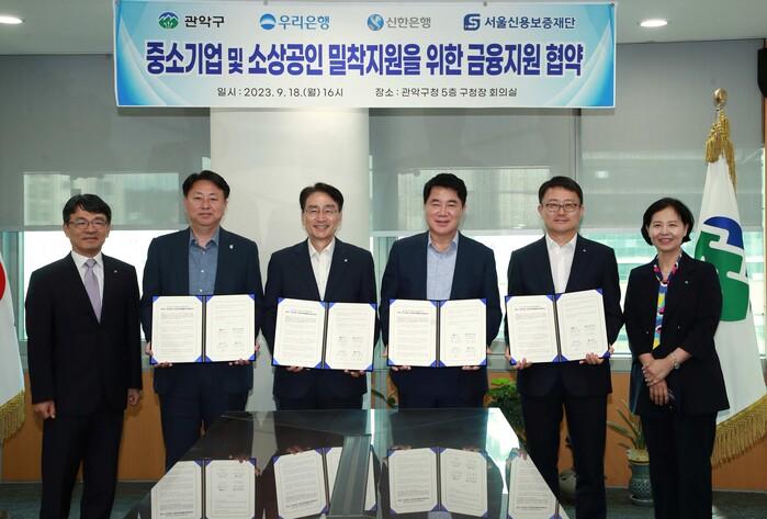 이에 더 나아가 구는 18일 우리은행, 신한은행, 서울신용보증재단과 ‘중소기업 및 소상공인 밀착지원을 위한 특별출연 업무협약’을 체결했다.