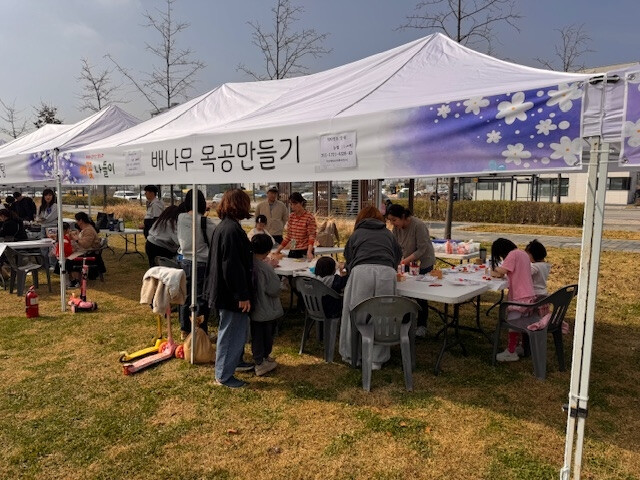 [평택=오왕석 기자] 평택시는 지난 11일과 12일 이틀간 함박산중앙공원 배꽃 나들이 행사에서 목재 체험 부스를 운영했다.