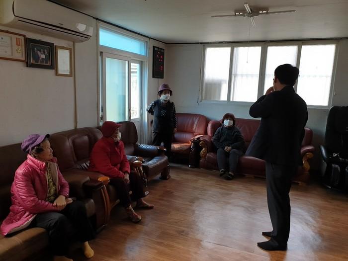 장지봉 경기 동두천시 소요동 신임 동장은 지난 6·10일 지역내 원터경로당 외 19곳 경로당을 방문해 노인들에게 신년인사와 부임인사를 전하고 마스크 등 위문물품을 전달했으며, 경로당 이용에 대한 애로사항과 동 행정에 대한 의견을 청취했다. 사진은 장 동장(오른쪽)이 경로당에서 노인들과 이야기를 하고 있는 모습. (사진제공=동두천시청)