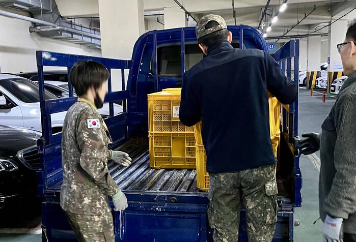 | ▲ 열린문고 운영을 통해 인근 군부대에 전달할 도서를 차량에 적재하는 모습 |