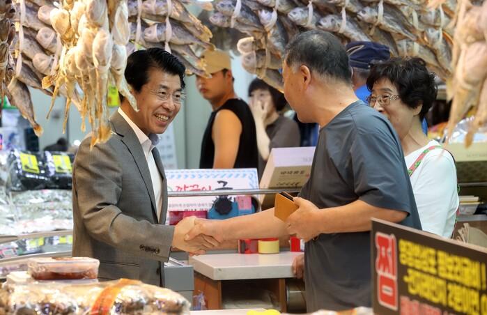 | ▲ 지난 13일 가락몰 골목형 상점가 지정식에 참석한 서강석 구청장이 상인들을 격려하고 있다. (사진=송파구청 제공) |