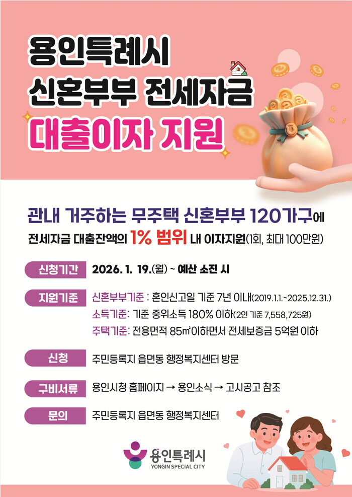 | ▲ 용인특례시가 2026년 신혼부부 전세자금 대출이자를 지원한다. |