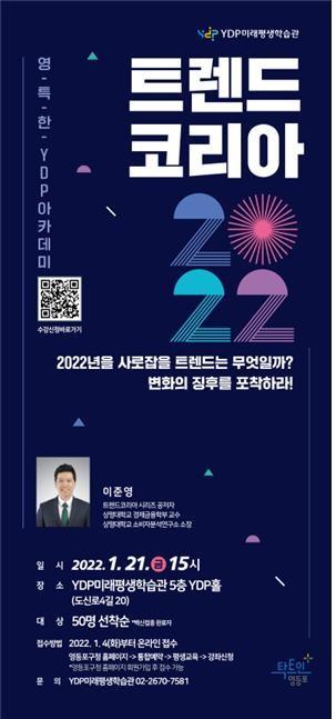 올해 아카데미의 첫 특강은 트렌드코리아 시리즈의 공저자이자 상명대학교 경제금융학부의 이준영 교수가 강사로 나서 ‘2022년을 사로잡을 트렌드는 무엇일까?’라는 주제로 강연을 진행할 계획이다.