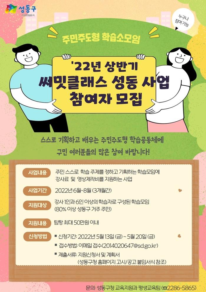 | ▲ 2022년 상반기 '써밋클래스 성동' 사업 참여 모임 모집 안내문. (사진제공=성동구청) |